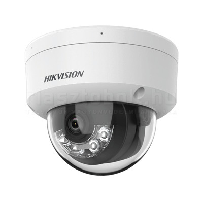 Hikvision DS-2CD1123G2-LIU: 2 MegaPixeles valós Day/Night kültéri IR/LED dual hibrid megvilágítású fix IP dómkamera. 1/2.9'' Progresszív scan CMOS, H.264/H.265/H.265+ tömörítések, tri-stream, 1920x1080px/25fps, optika: 2,8mm, alacsony fényérzékenység: 0.005 lux, 3D DNR,három irányba állítható kameratest, beépített inframegvilágító: 30m kivilágítása, beépített valós fényű megvilágító 30m (választható, beállítható működéssel), D-WDR, alapszolgáltatások: mozgás-, szabotázs-, jelvesztés- hálóhiba-, rögzítési hiba-, IP cím hiba-érzékelés, emberalak/jármű érzékelés, beépített mikrofon. Kompatibilitás: ONVIF. Kliensszoftverek okostelefonra. IP67 védettség, FEHÉR fém/műanyag ház. Méretek: Ø 121 x 97.7 mm, tömege: 550g, működési hőmérséklet: -30°C~+60°C, tápigény 12VDC vagy PoE. Belépő szintű kiskamera dizájnos kialakításban, üzlethelységek, irodák kedvező árú biztonsági kamerája lehet, kombinált megvilágítással, akár színes éjszakai képpel.
